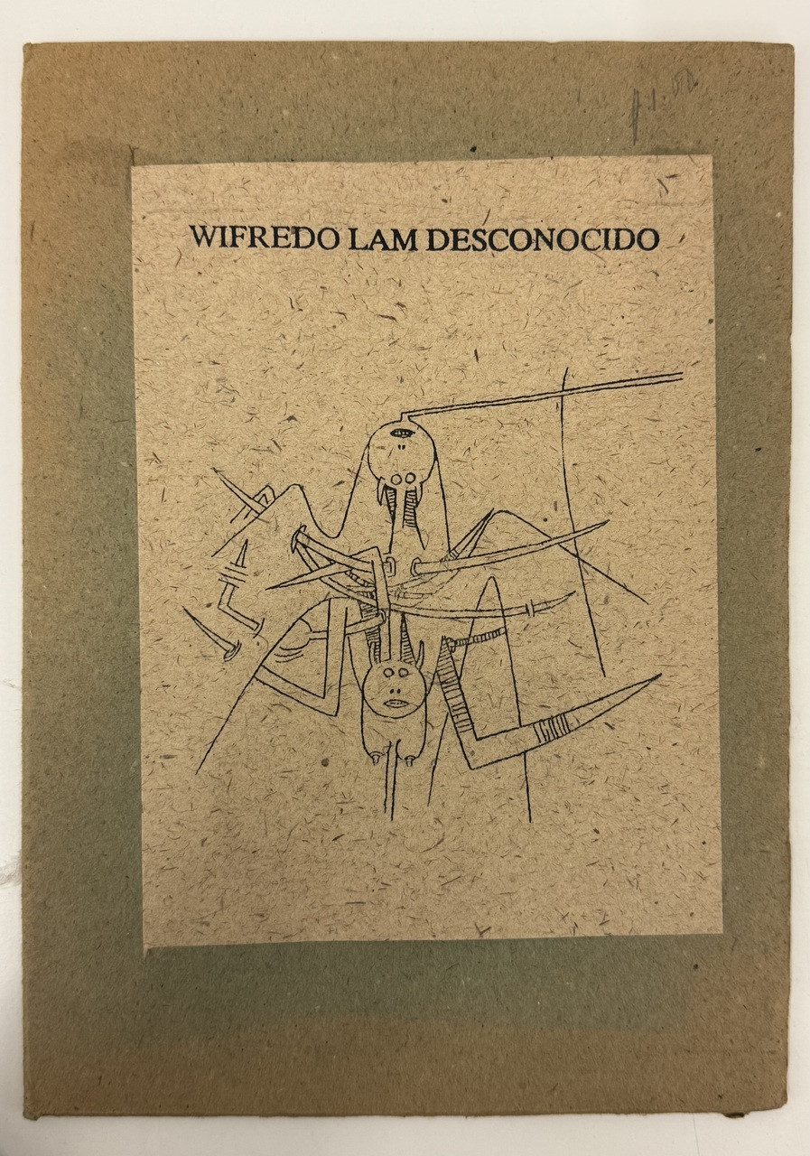 "Wifredo Lam Desconocido" (Unknown Wifredo Lam) is an exhibition catalog published by Casa de las Américas' Galería Latinoamericana in conjunction with the Fourth Bienal de La Habana (Cuarta Bienal de La Hebana) in 1991. The minimalist cover, printed on kraft paper, features an original abstract line drawing by Lam rendered in black ink at the center—characteristic of his geometric, gestural style—along with the artist's distinctive calligraphic signature. The title text appears on the left side with publisher information on the right, and four small decorative symbols anchor the bottom. This austere design aesthetic reflects both the economic constraints of Cuba's Special Period and a return to essentials that emphasizes the artist's work directly.