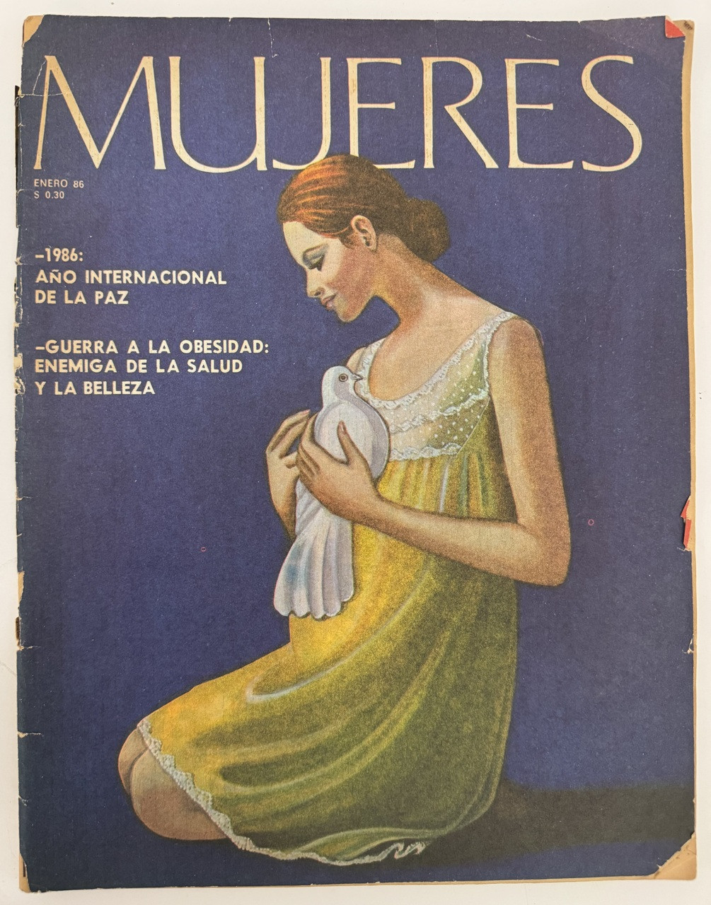 Editorial de la Mujer (cover designer: Lina Núñez), "Mujeres, Año 26, número 1, enero de 1986. 'Guerra a la Obesidad, Enemiga de la Salud y la Belleza.'" Magazine, offset print