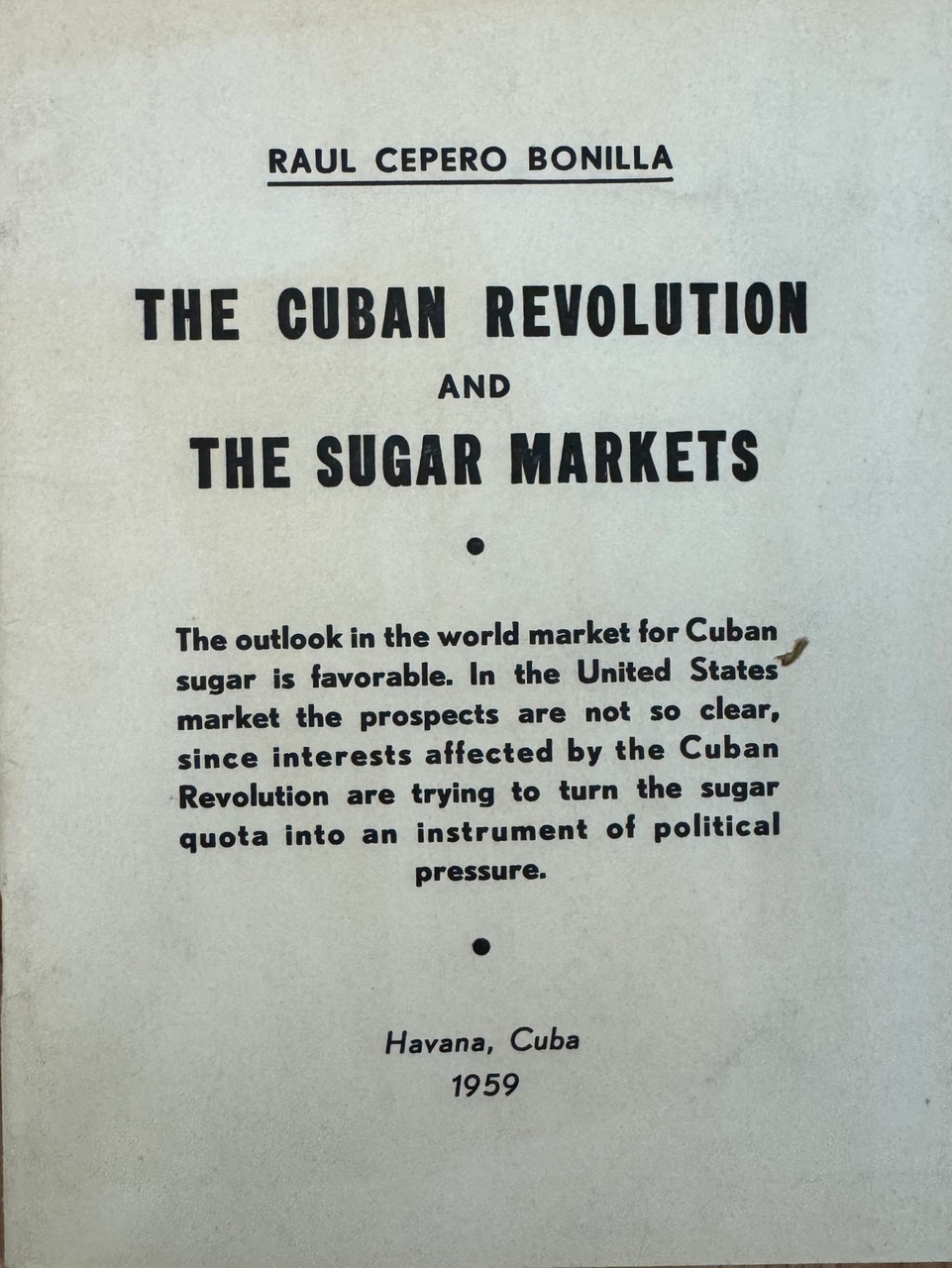 Cepero Bonilla was an influential Cuban economist and historian who served in various government positions after the revolution. This pamphlet represents crucial documentation of the economic tensions and uncertainties facing Cuba in 1959 as it navigated its relationship with the United States and the global sugar market.