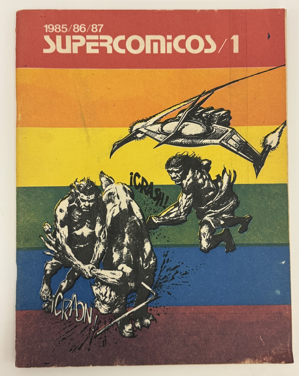 SUPERCOMICOS was a compilation publication that brought together selected works from Editorial Pablo de la Torriente's comic magazines published between 1985-1987. This first volume represents the publisher's effort to preserve and showcase the best Cuban comic art from this period, when they were producing the seminal magazine CÓMICOS (launched December 1985), the youth magazine PABLO (37 issues), and the biweekly tabloid EL MUÑE (48 issues), along with nearly 100 books dedicated to graphic humor, comics, entertainment, and coloring books. The publication served as both an anthology and a celebration of Cuban comic artists' contributions during the post-Revolutionary period, aimed at consolidating isolated attempts to meet the demand for quality comic literature, especially for new generations. The cover by Tomassi features dynamic figures against bold horizontal color bands, characteristic of Cuban graphic design from this era.