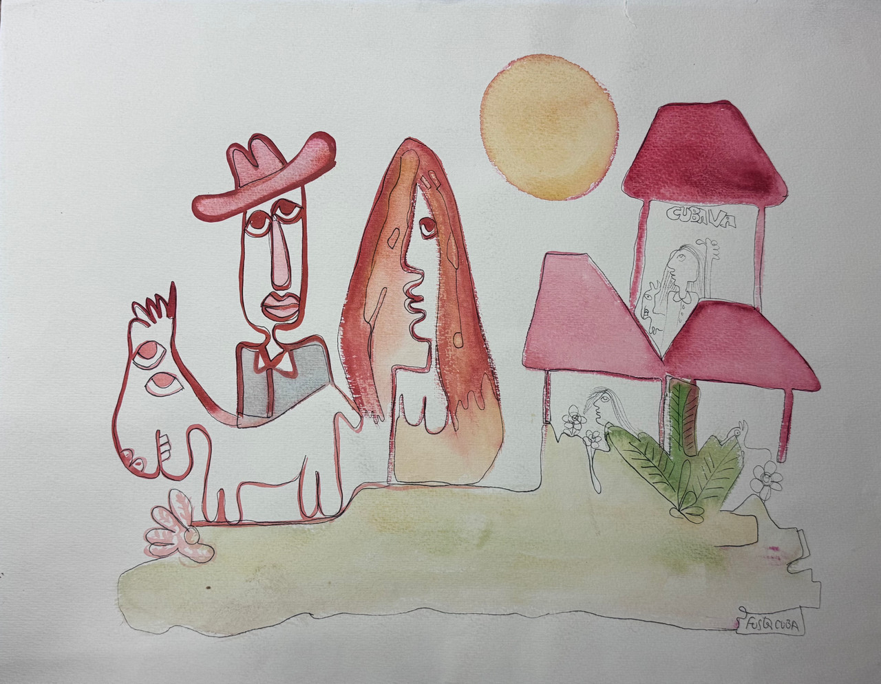 Fuster (José Rodríguez Fuster), "Cuba va," N.D.. Watercolor on paper. 15.25" x 20" #31