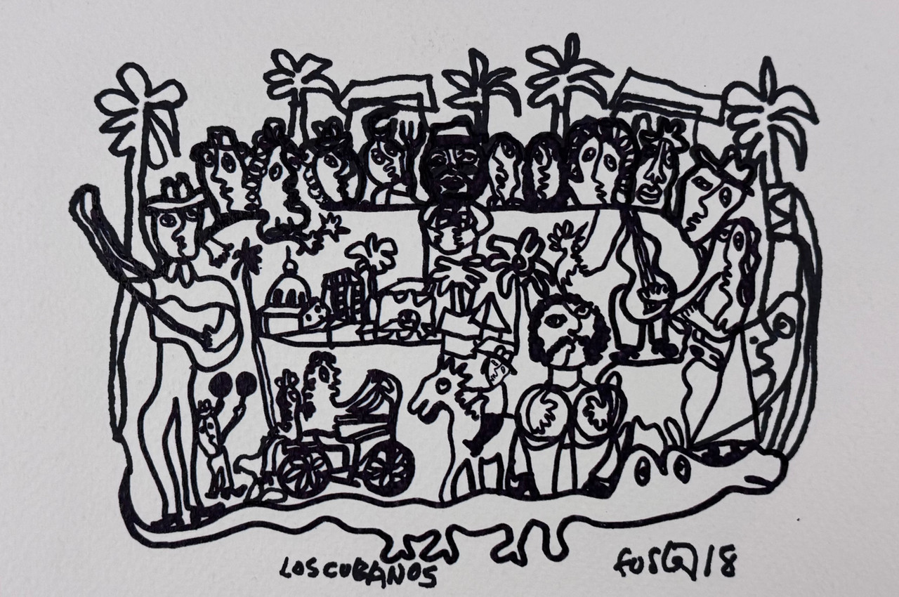 Fuster (José Rodríguez Fuster), "Los Cubanos,"  2018. Ink on paper. 6” x 8”. #5154C