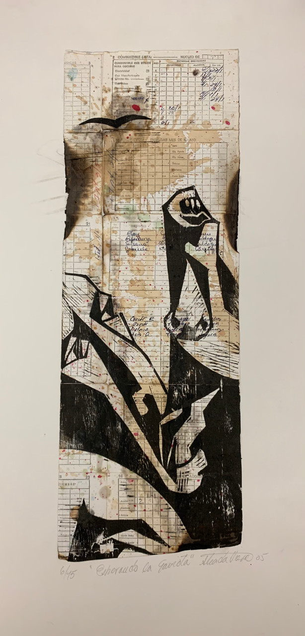 Guillermo Estrada Viera #3777B. "La Gaviota," 2005. Xylography Print On Government Ration Cards 6/15. 25.25" X 12.5"