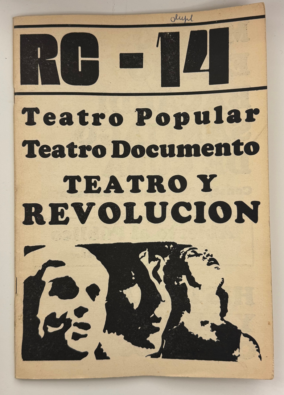 Instituto del Libro (cover artist: Frémez (José Gómez Fresquet)), "RC: Revolución y Cultura," número 14, circa 1970s. Teatro y Revolución." Magazine, offset print on newsprint
