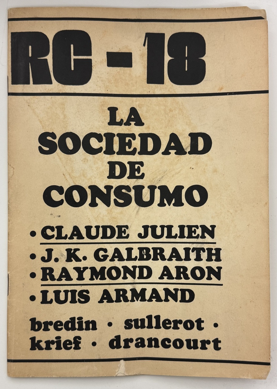 Instituto del Libro (cover artist: Frémez (José Gómez Fresquet)), "RC: Revolución y Cultura, Año 3, número 18, enero de 1970. La sociedad de consumo." Magazine, offset print on newsprint.