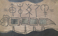 Mederox (José Mederos Sigler) #5995. "Mascara Cubana," 1994. Mixed media on cardboard, sand and asphalt. 21 x 15.5 inches.