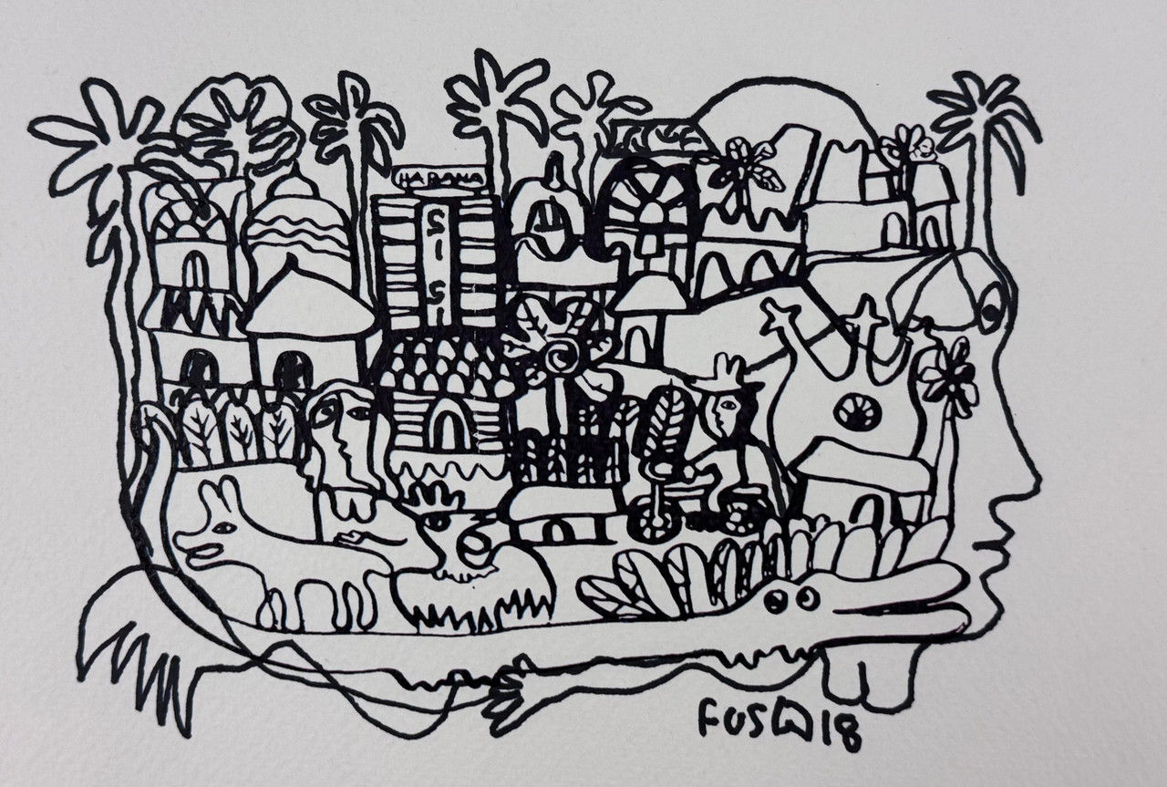 Fuster (José Rodríguez Fuster), Untitled, 2018. Ink on paper. 6” x 8”. #5154D