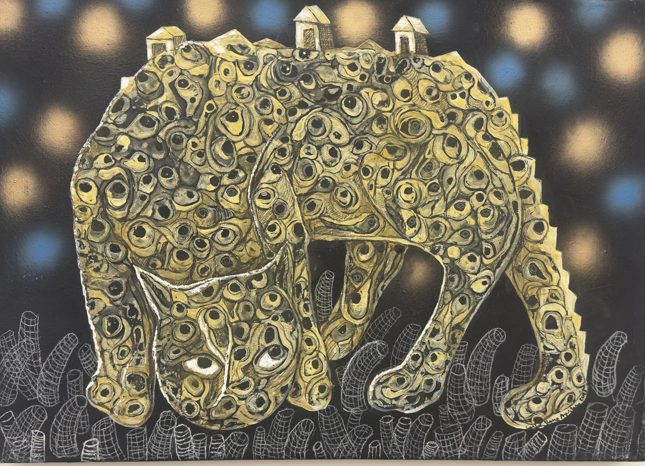 Carlos René Aguilera, "Gato Argos," 2025. Mixed media on canvas. 19.7" × 27.6". #2341B