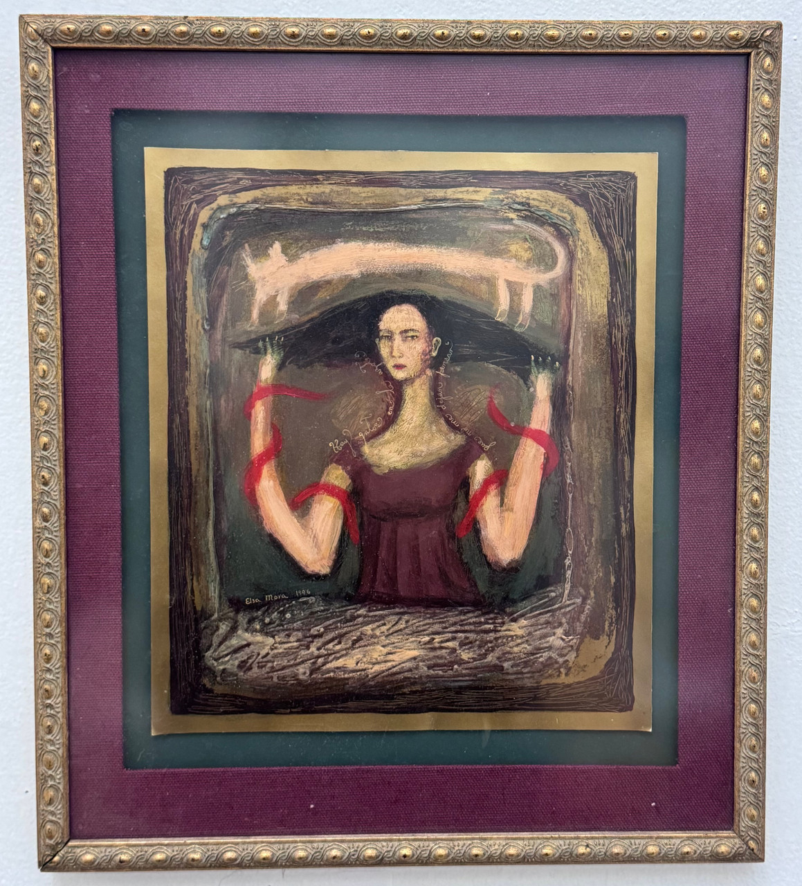 Elsa Mora, Hay gatos en la azotea que no me dejan pensar, 1996. Mixed media on paper. 14" × 12” #5915B (SL) SOLD!
