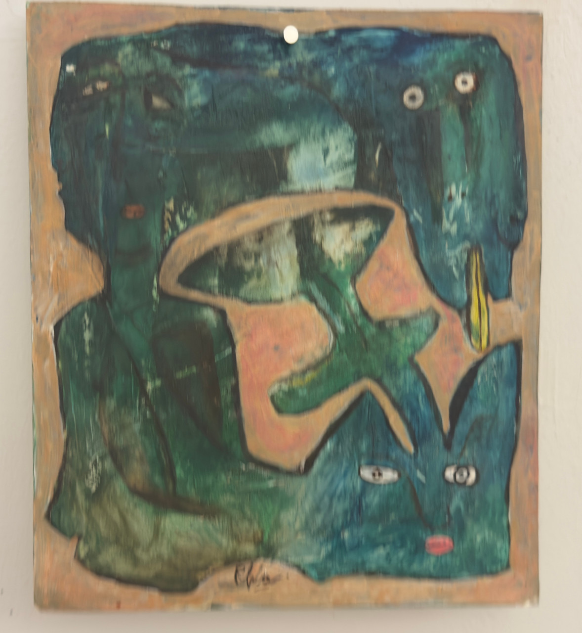 RHA, "Retrato de Sandra con su gato," N.D. Mixed media on paper. 10" × 8.25". (SL) SOLD!